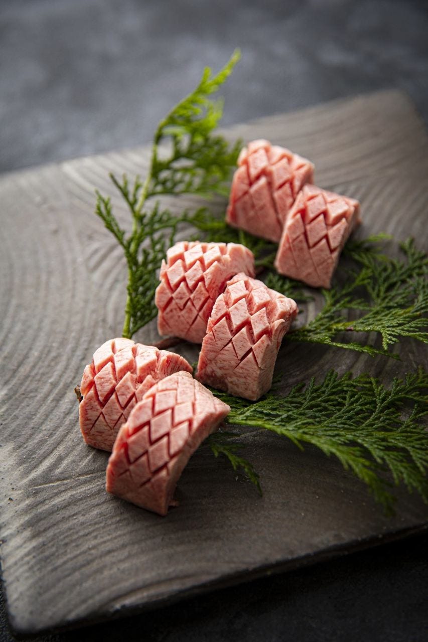 黒毛和牛の希少白センマイ刺し。見た瞬間に鮮度が分かる逸品も、「いちえ」ならでは。