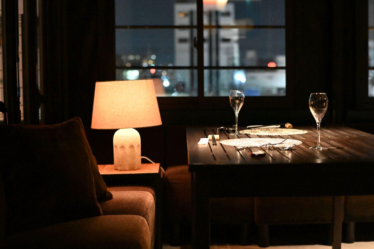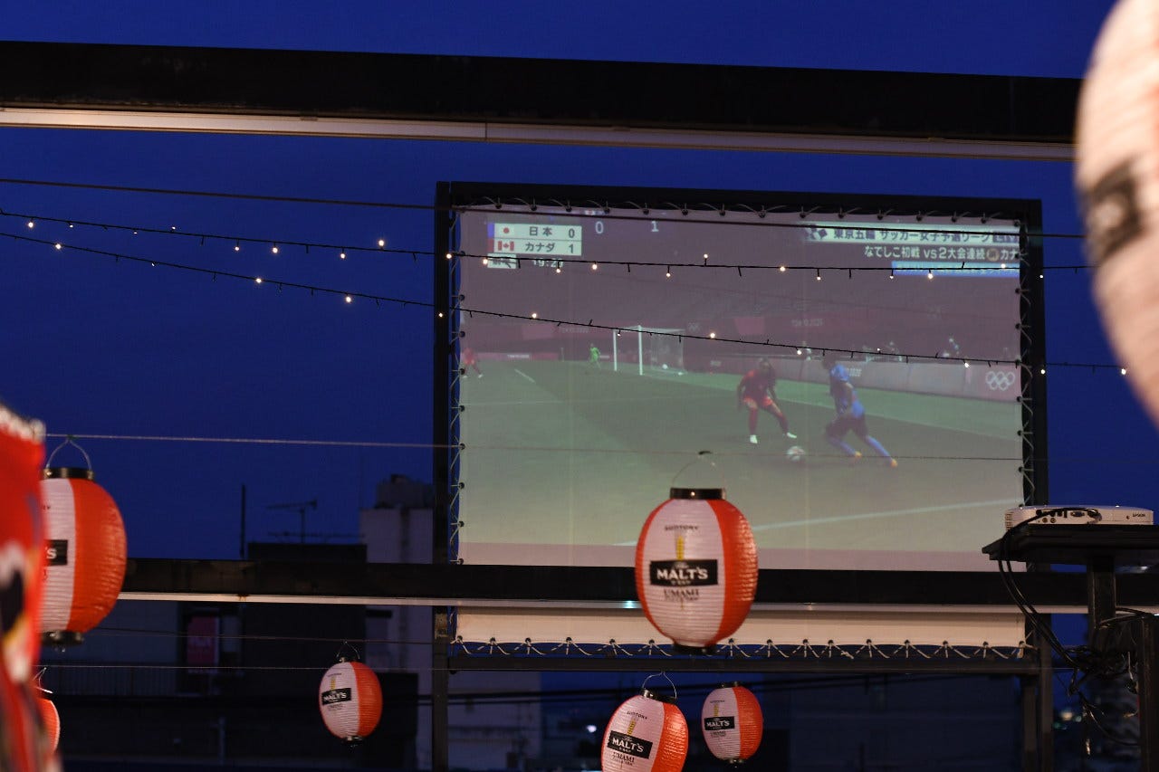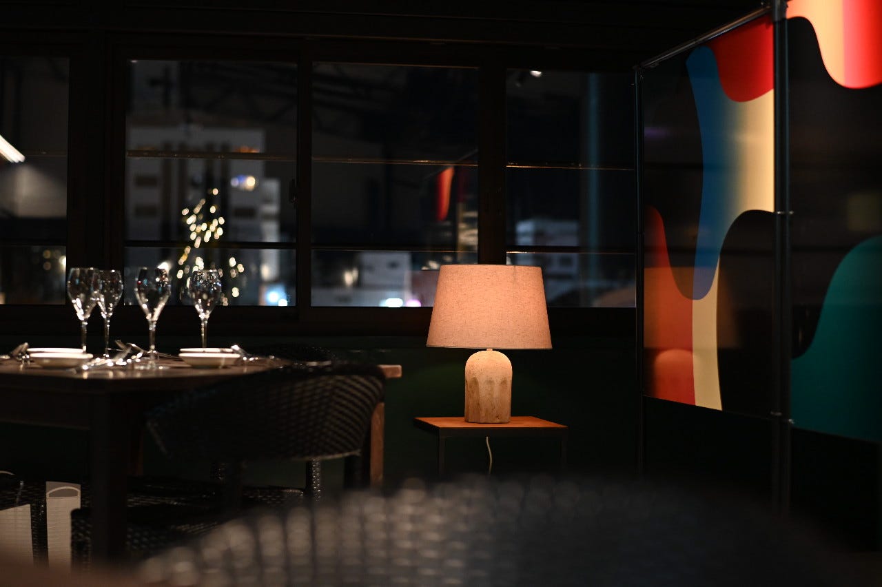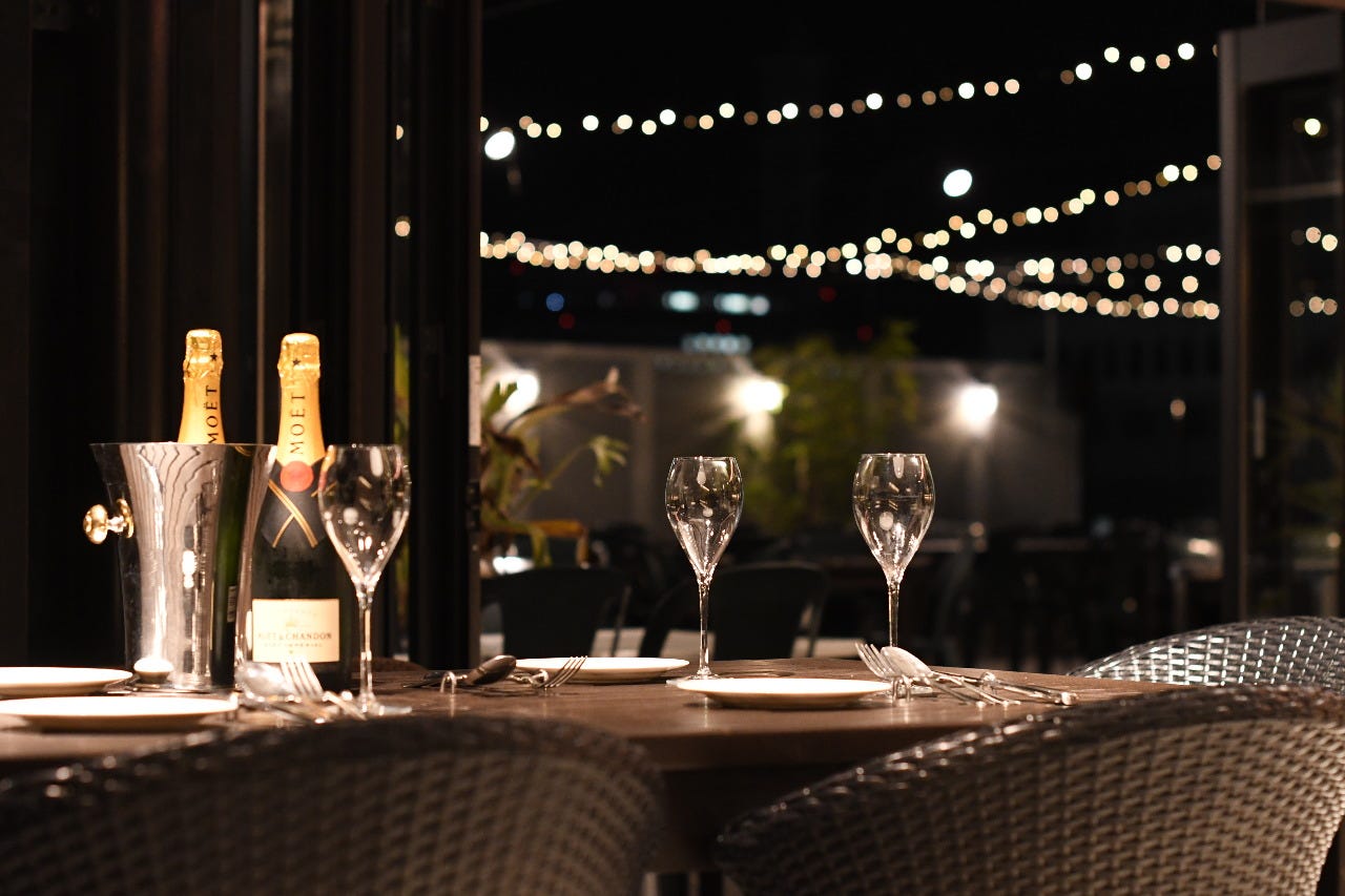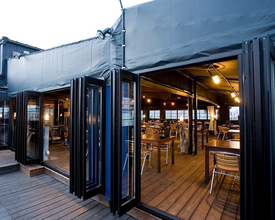 気候の良い季節はガラスの窓が全部開き、屋上のウッドデッキと繋がります。