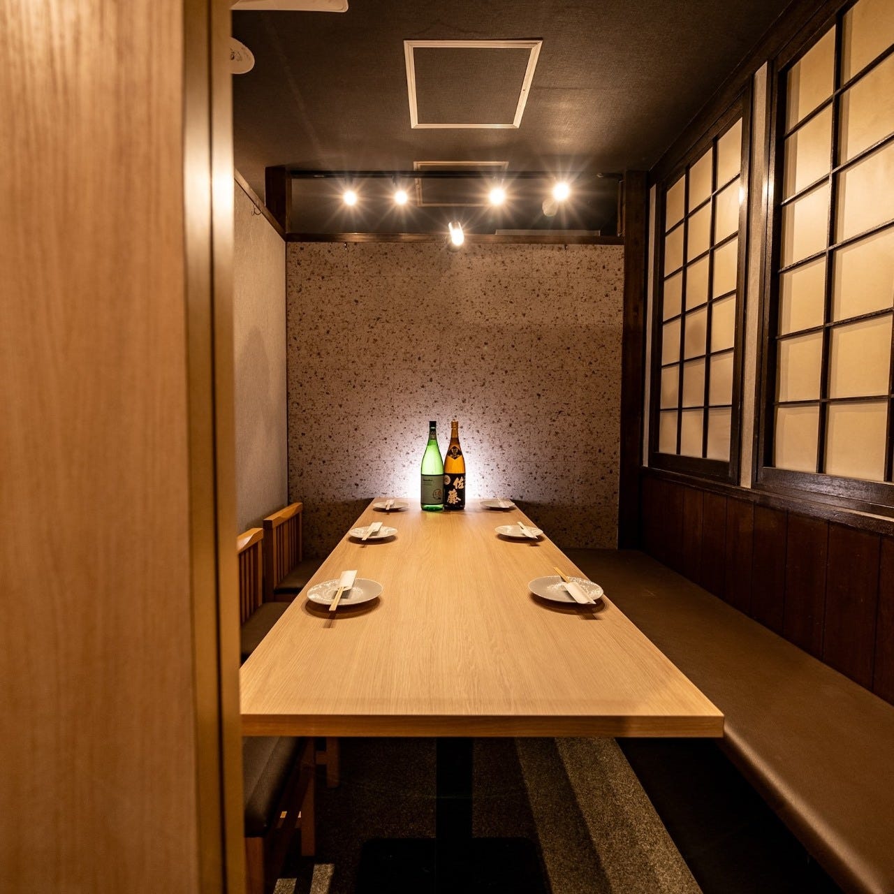 心安らぐ完全個室をご提供しています。和の趣を感じる落ち着いた空間は、少人数から大人数まで対応可能です。プライベート感を大切にし、周囲を気にせずゆったりとした時間を過ごせます。親しい友人や家族との集まり、ビジネスの接待など、さまざまなシーンでご利用いただけます。