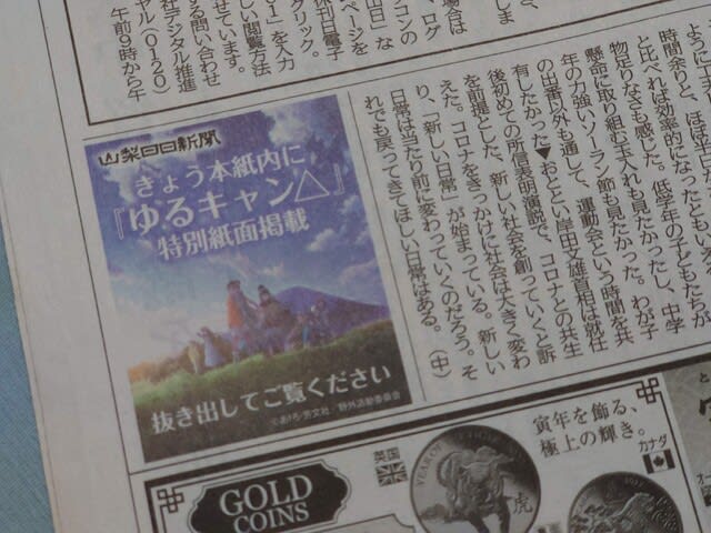 「きょう本紙内に『ゆるキャン△』特別紙面掲載」の記載が!