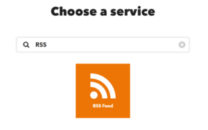 連携サービスの検索画面で「RSS」と検索し、RSS Feedをクリックします。