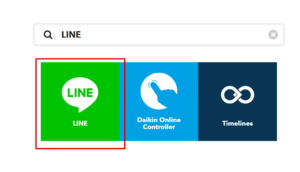 連携サービスの検索画面で「LINE」と検索し、LINEアイコンをクリックします。