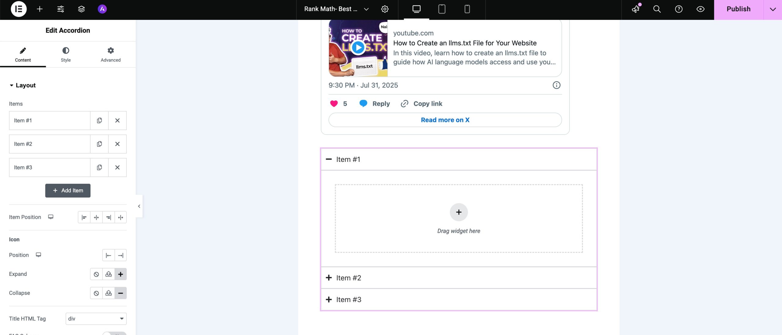 Rank Math has added the FAQ option for the Accordion in Elementor.