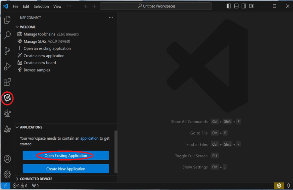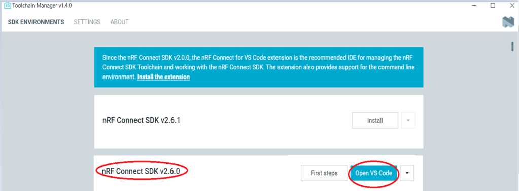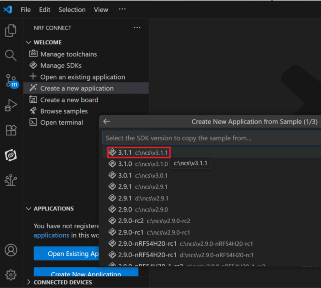 The below example uses NCS v3.1.1 and runs the program under: C:\ncs