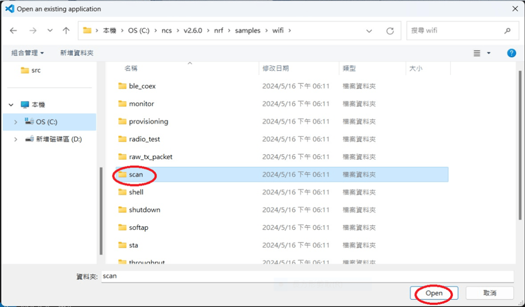 Step 1: Start with a Wi-Fi Scan project and run the program under: C:\ncs\v3.1.1\raytac