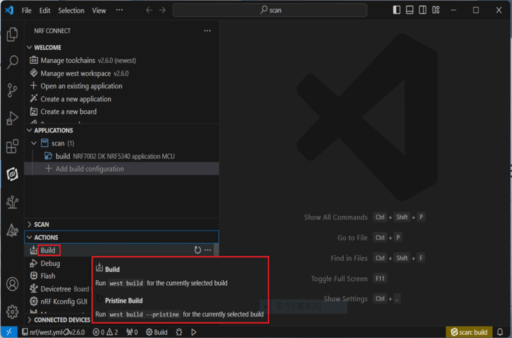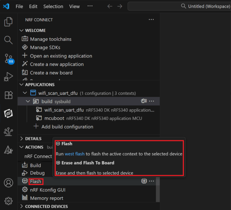 Note: Pease make sure to have both “Nordic nRF5340-DK” and “AN7002Q-DB-5340-M” connected and running during the WIFI+BLE (nRF7002+nRF5340) project development.