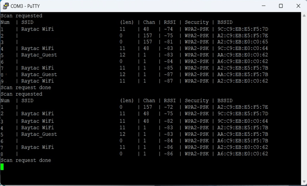 B. WIFI SCAN – PuTTY Console