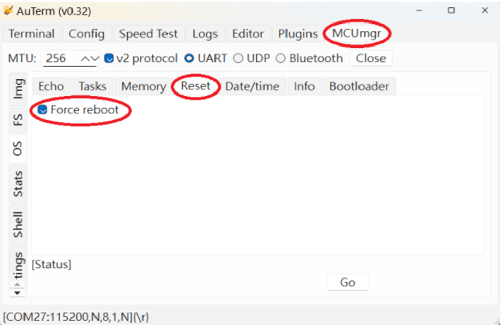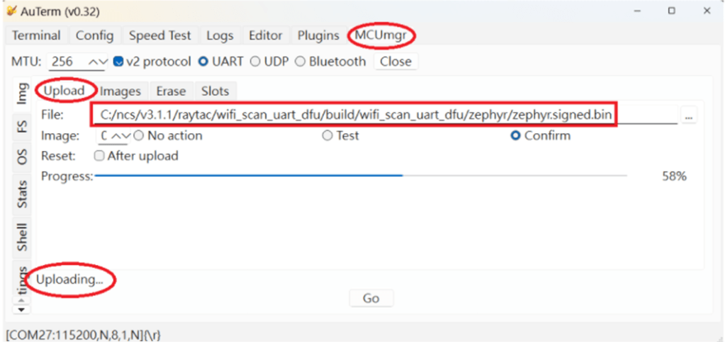 Step 8: It is required to doMCUMGR before working with DFU over UART
