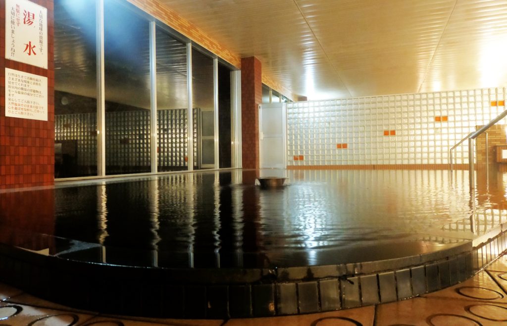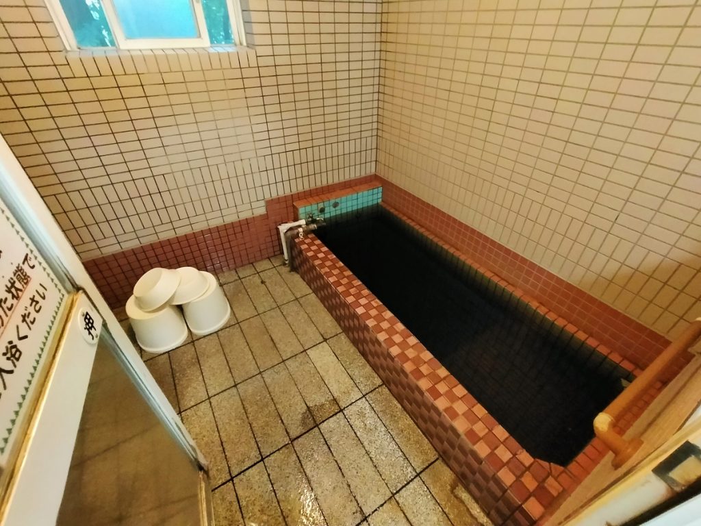 自家源泉が2本。どちらもいわゆるモール泉です。浴室には、モール臭に少し硫化水素臭が混ざった香りが漂っています。