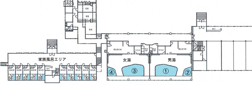 純温泉A = 浴槽 ① ~ ⑭