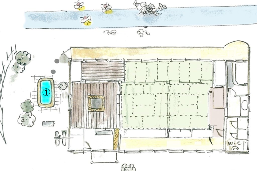 浴槽①(離れ特別室「清流亭」の露天風呂)= 純温泉C