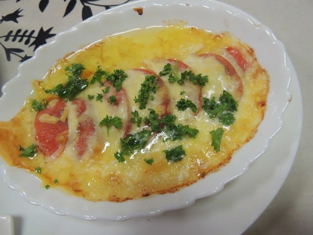 トマトとモッツァレラ のカプレーゼのチーズ焼き