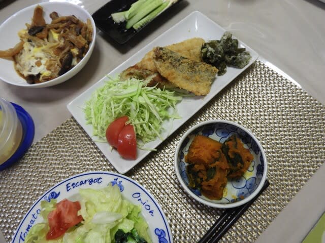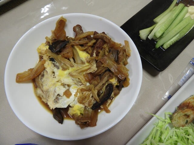 煮物は 白菜・揚げ・シイタケ・ごぼう天の卵とじ