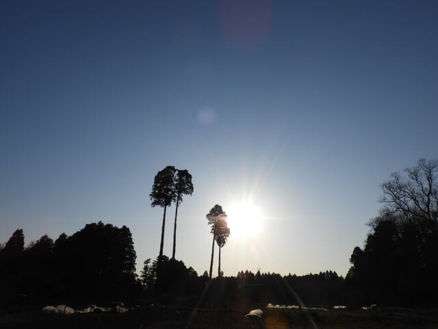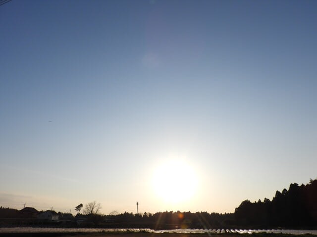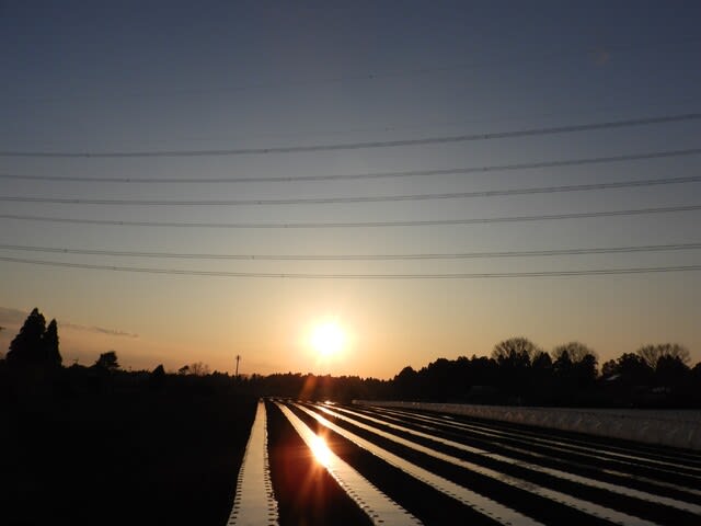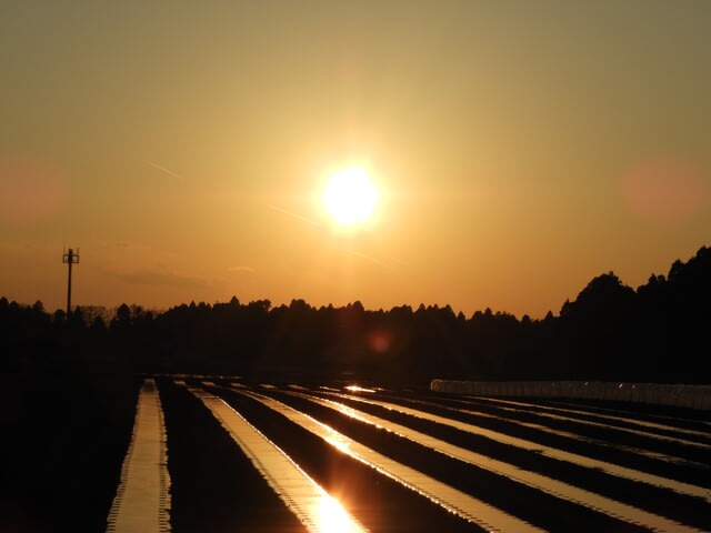 ビニールハウスの上に太陽が・・・