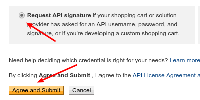 On the next page look for the box labelled Request API signature. Make sure the radio button in there is checked, and then click Agree and Submit.