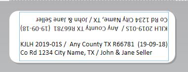 And, the printed label as it appears on a file folder with the text visible from both front and back of the folder when the label is folded over the tab: