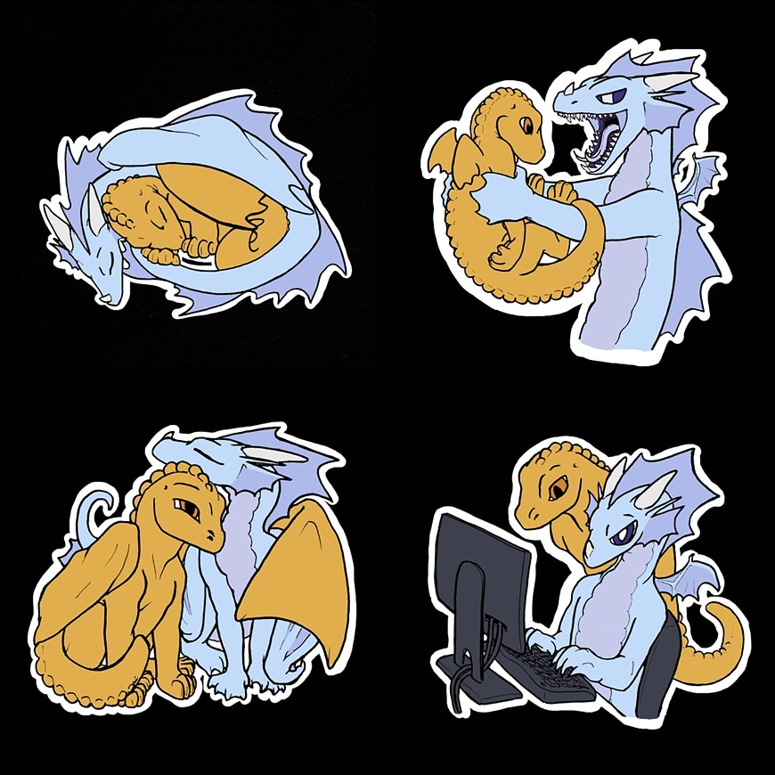 Made a sticker pack with dragon characters for use in Telegram chats.