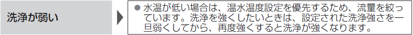 経験的にですが、「吐水量」を2段階以上下げて、再び「吐水量」を最大に戻すという操作を5~6回行って、やっと「吐水量」が強くなることもあったので、「瞬間湯沸かし式」のTOTOウォシュレットをお使いの方は試してみてください。