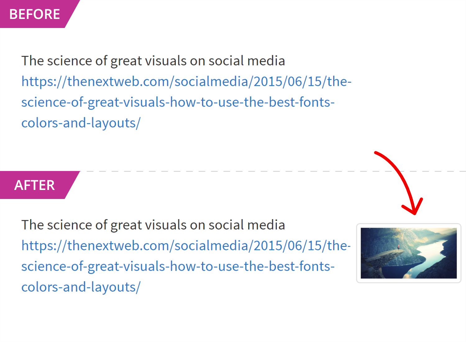 Already got a favorite publishing tool? Enhance posts in Buffer, Hootsuite or anything else. Create Enhanced posts in bulk from RSS, Feedly or Pocket.