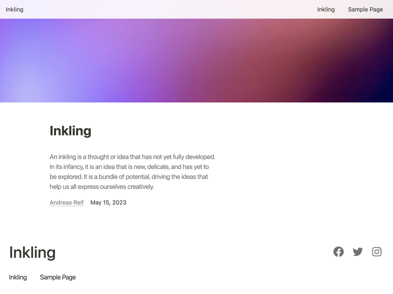 Inkling is a theme for WordPress that is inspired by the UI and aesthetic of Notion, featuring light and dark mode styles, templates for sans-serif, serif, and mono fonts, and a range of familiar colors.