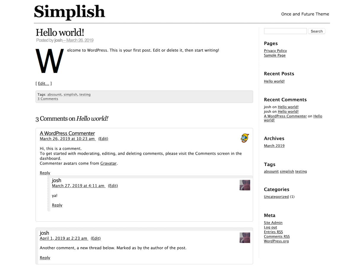 Simplish is a WordPress variant of the Scribbish theme for blogs.