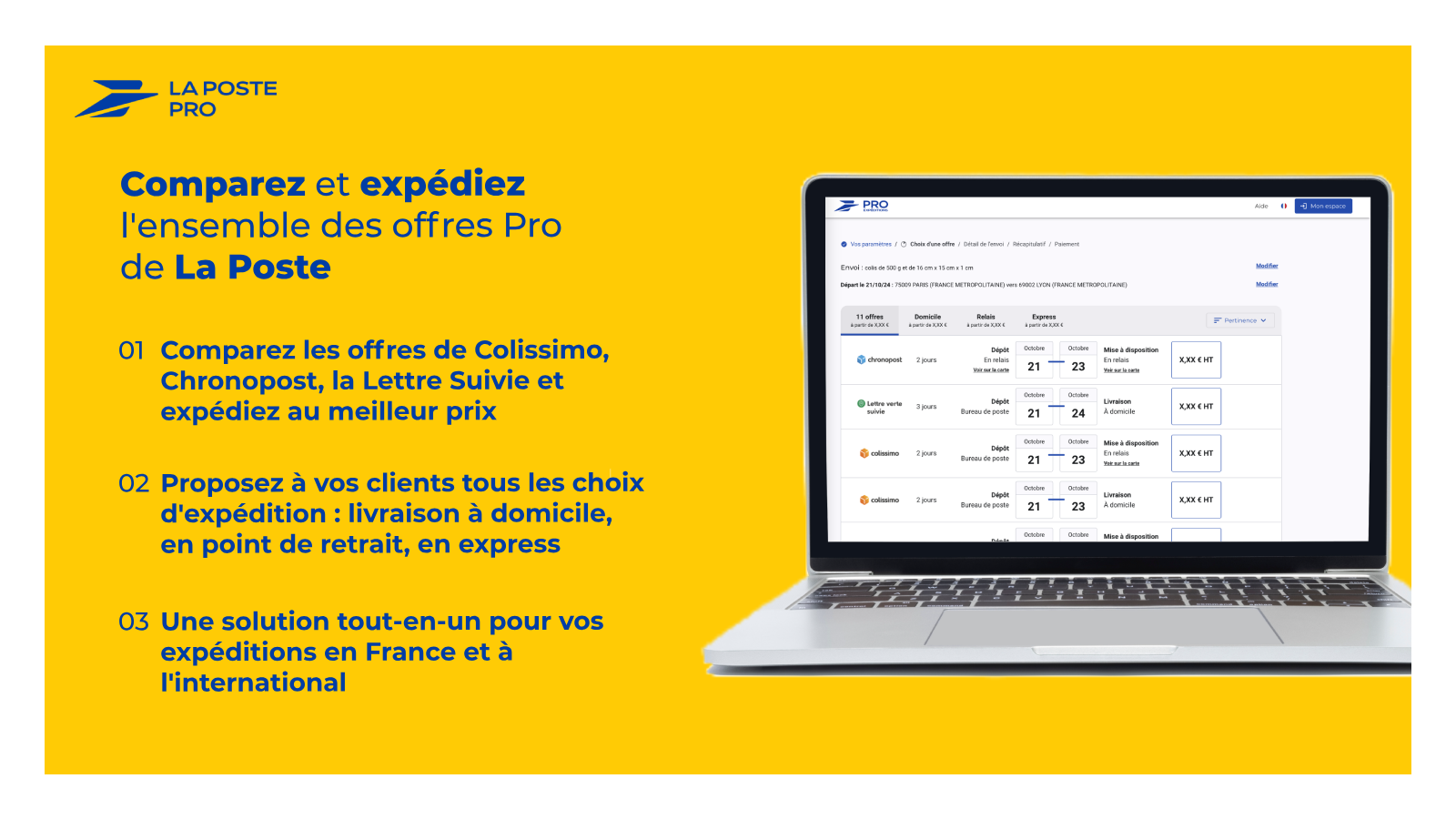 Ship all types parcels or letters with all the offers from La Poste. No volume restrictions, no subscription, no hidden costs.