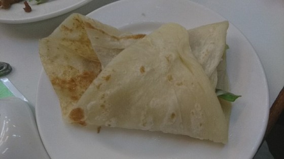 皮は以前食べた北京ダックのものより薄かったかな。