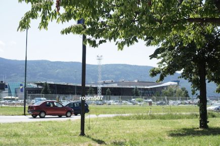 空港最寄りバス停「Dobrinja (Škola)(ドブリニャ シュコラ)」で降ります。バス停「Dobrinja (Škola)」は、Mercatorという大型スーパーマーケットの前にあります。