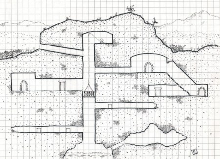 This map is a research base on a small moon. It was a recent commission for Through the Void, a science fiction game that is being itchfunded right now. The game is described as a minimalist OSR (Old School Renaissance) game: