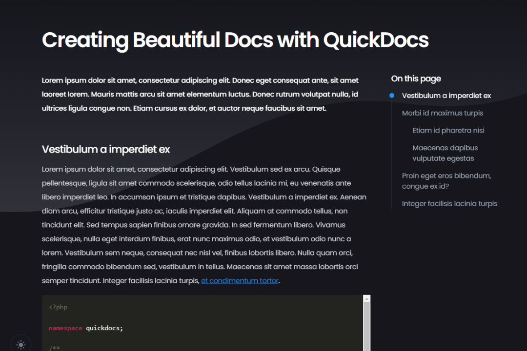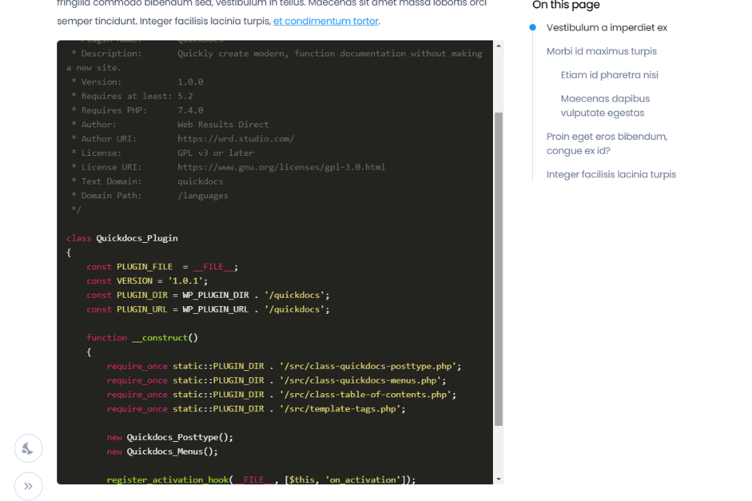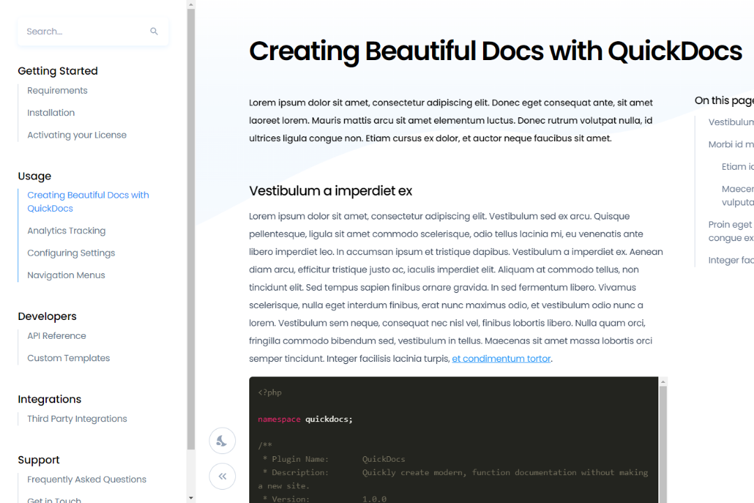 QuickDocs lets you quickly create modern, functional documentation pages that let you skip the setup and go straight to the content.