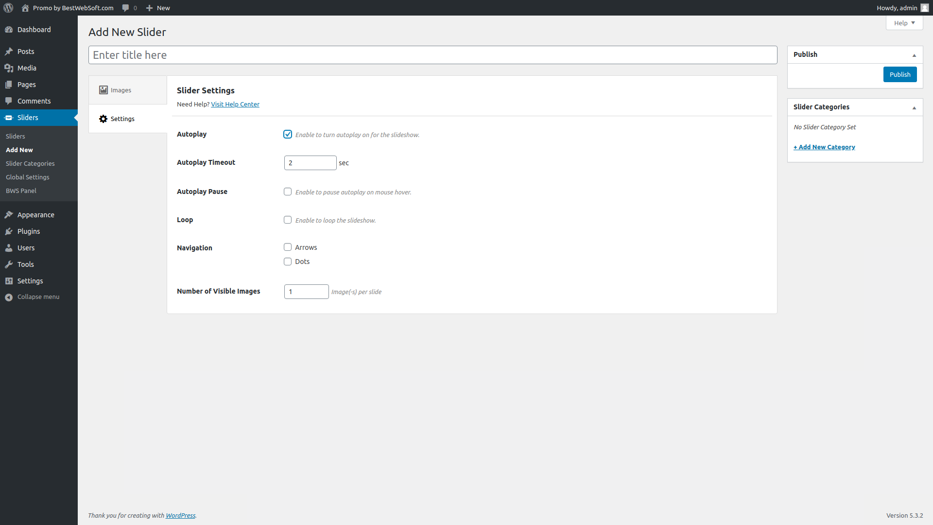 - Вы можете настроить необходимые параметры, используя вашу панель администратора WordPress в разделе «Слайдеры» > «Общие настройки» и во вкладках «Настройки» каждого слайдера.