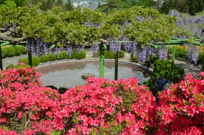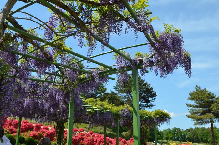 寒河江公園のツツジの真ん中に、藤棚があります。