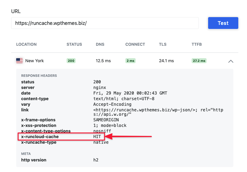 Using this tool, you can also check the response header to see if this web page is served by NGINX FastCGI Cache (RunCache).