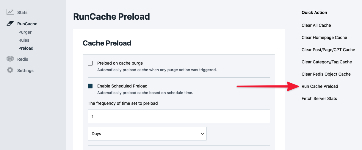 - Preload caches manually by clicking “Run Cache Preload” link.