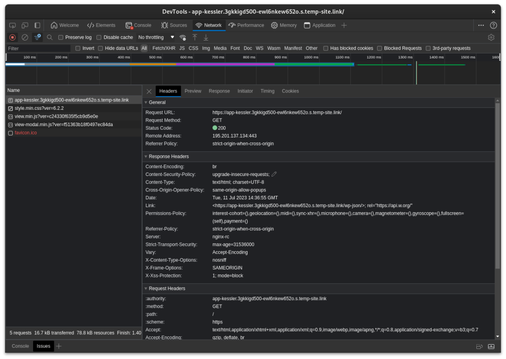 - You can also use your browser’s developer tools to inspect the headers of your website. Just open your website in your browser and press F12 to open the developer tools.