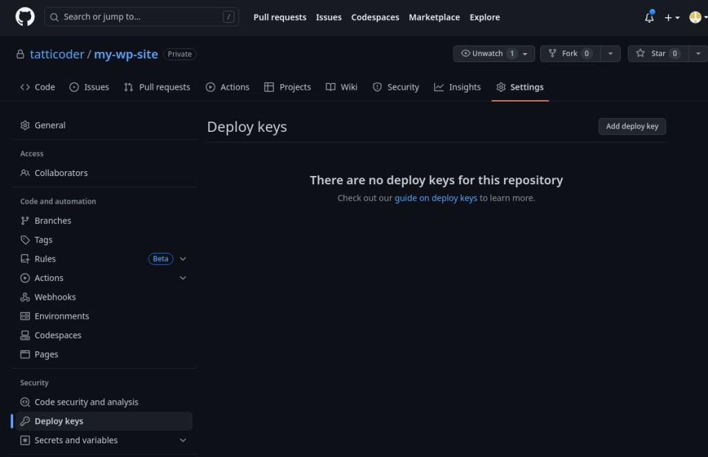 Once you have located the menu, click on “Add deploy key“.