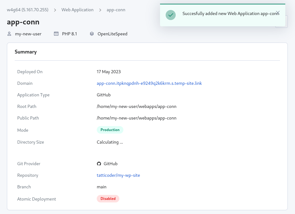 We highly recommend you create a new user for each web application for better security. This can be done easily by un-checking the “Use existing system user” box, and providing the name of the new user account.