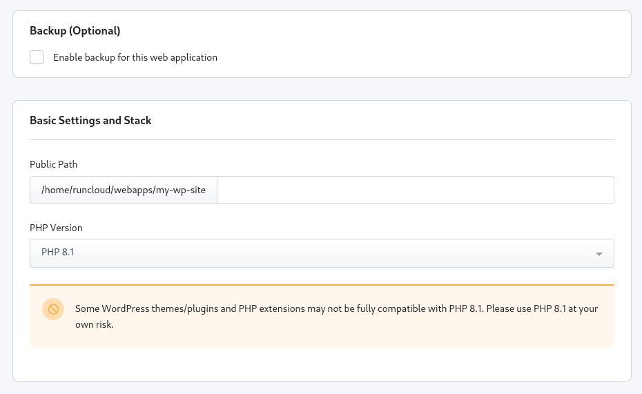 Finally, go back to the RunCloud dashboard and quickly configure the Backup and basic tech stack. For most users, the default settings work just fine. However, if you would like to configure these, you can learn to do so from our backup documentation.