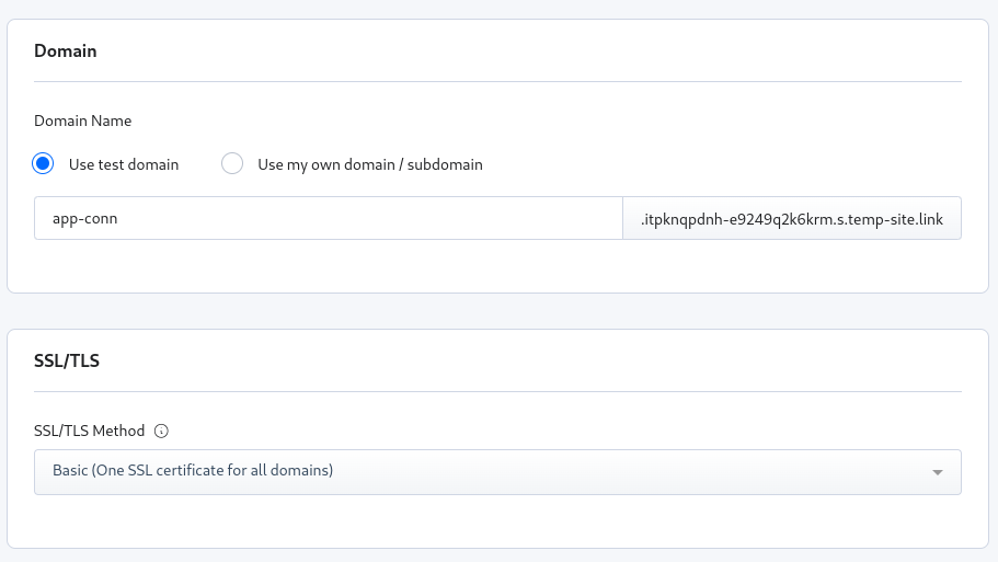 After this, you can move to the domain name and SSL/TLS section. You can either configure it right now, or use the default settings – and change them later, as necessary.