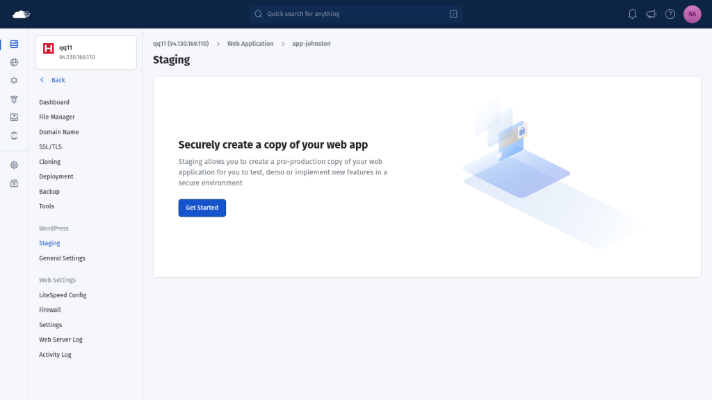 WordPress Staging is a feature on RunCloud that allows you to create a copy of your WordPress web application for testing, development, or demonstration purposes.