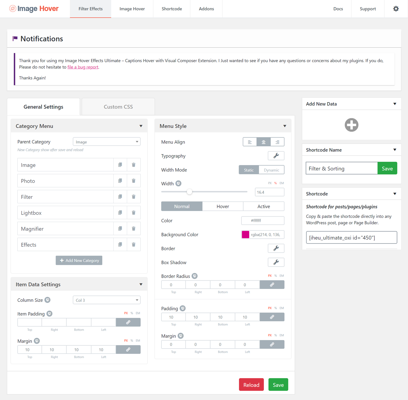 WordPress professional developers can get advanced tools and freedom of creativity with our plugin. They can use their custom styling within Image Hover Effects Ultimate (Image Gallery, Effects, Lightbox, Comparison or Magnifier) WordPress plugin. Advanced developers can add their custom CSS in the plugin very easily. There’s a section we’ve left for this task.
