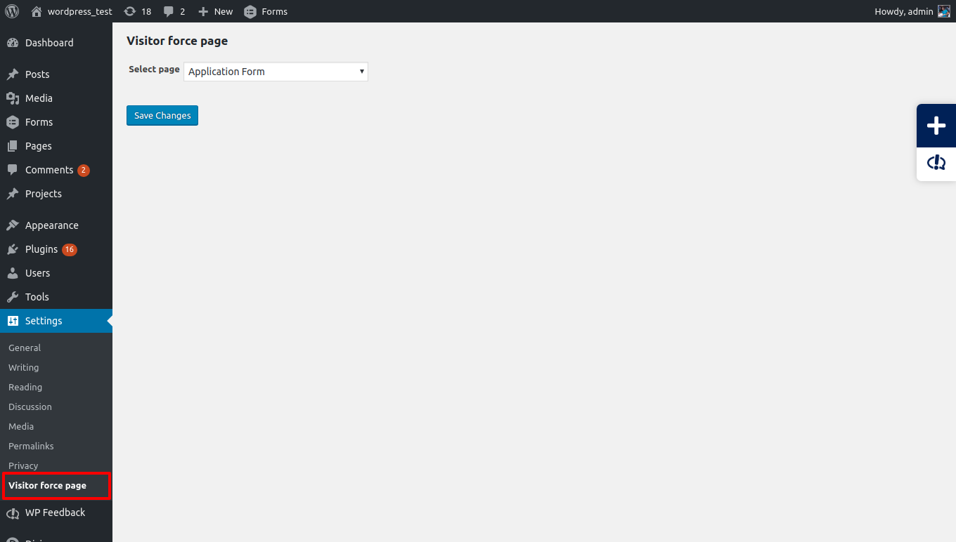 1) Go to setting page & select menu => select Visitor force page & select a page.Requires: WordPress 4.5 or higher