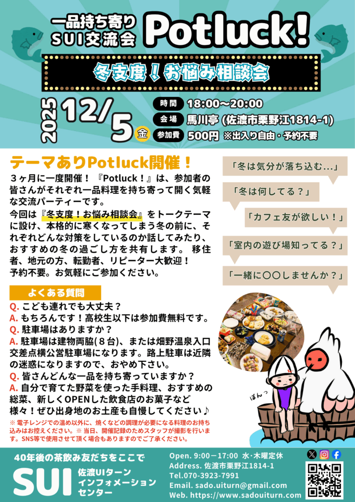 今回の参加者の中には「佐渡に移住したい」という移住前の方もいらっしゃいました^^情報収集のための交流会参加でももちろん歓迎です!