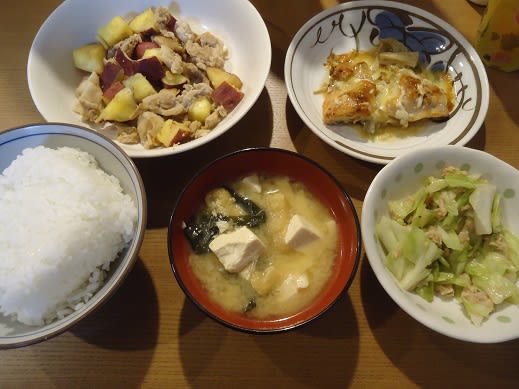 さつまいもと豚肉の甘辛炒め