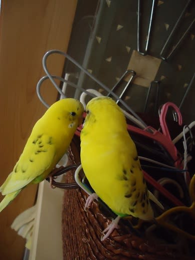 押し入れの洗濯用のハンガー入れがお気に入りのピノとレモン。