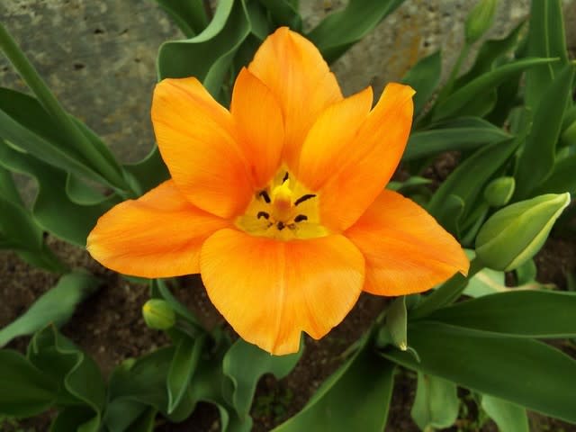 昨年秋も深まってそろそろ雪でも降ってくるようなときに大急ぎで買って植えたチューリップです。