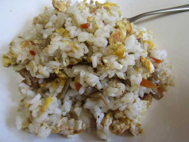きんぴらごぼうを細かき切ってチャーハンに入れてみました。