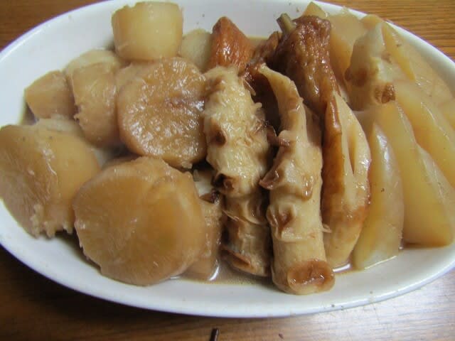 採りたての大根は煮物にして食べました。