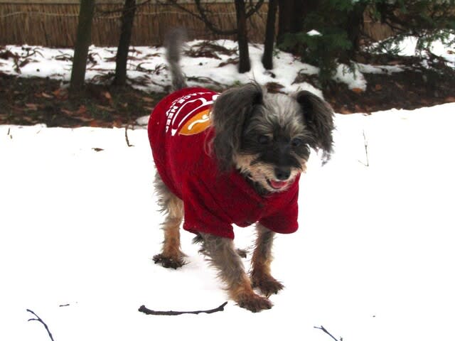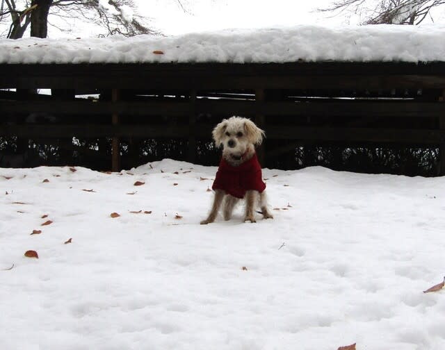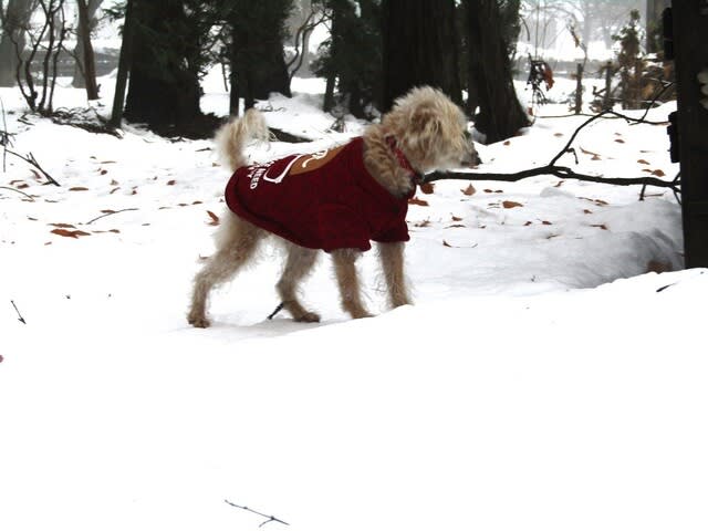 これからのお散歩はどこも真っ白ですがワンズは元気です。