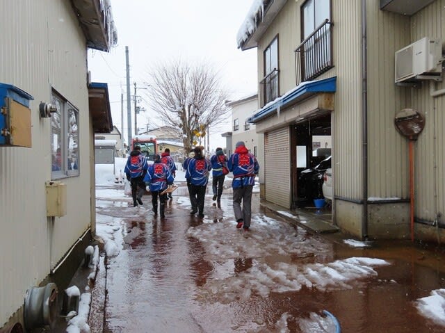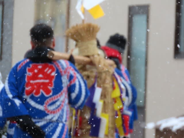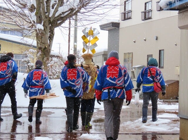 今朝も奉納される恵比寿俵を担いだ方たちが各屋屋を練り歩きます。